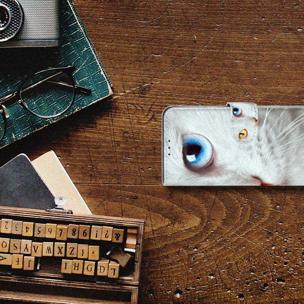 Witte katten zijn erg bijzonder en dat is precies de reden dat wij deze op prominente wijze op dit design hoesje hebben geplaatst. Maar deze witte kat is extra speciaal, doordat de ogen twee verschillende kleuren hebben: blauw en vurig rood. Hiermee heb jij als uniek mens ook een unieke bookcase. Ook de manier waarop dit telefoonhoesje voor de Honor 20 is bedrukt, is bijzonder. Je ziet namelijk een kleinere versie van dezelfde kat terug op het lipje. Hierdoor zie je de speciale witte kat twee keer terugkomen op jouw hoesje. Omdat je waarschijnlijk een dierenliefhebber bent als je dit Telefoonhoesje met Pasjes uitkiest, is dit ook een erg duurzaam hoesje. Het hoesje wordt aan alle kanten met duurzame inkt bedrukt.