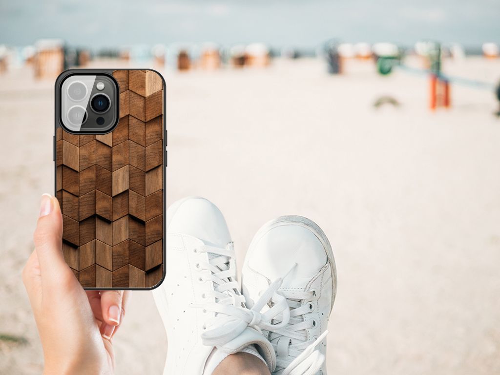 Onze houten hoesjes, niet letterlijk natuurlijk, maar onze design hoesjes met een bedrukking van houtprint zijn erg populair. Daarom werd het tijd voor een uitbreiding van onze collectie houten hoesjes. Hoe tof is dit wooden cubes design? Gegarandeerd dat jij met een uniek hoesje rond loopt! Dit design wordt geprint op een Houten Print Telefoonhoesje speciaal op maat gemaakt voor de iPhone 13 Pro Max. Het ligt prettig in de hand en is licht van gewicht. Het is een mix van hardcase en TPU. Deze combinatie samen zorgt wat ons betreft voor een perfect hoesje als je van niet te veel poespas houdt. Alleen de achterkant van je telefoon wordt beschermd. Daarom adviseren wij om dit hoesje in combinatie met een screenprotector te gebruiken. Bestel vandaag nog dit toffe wooden cubes hoesje!