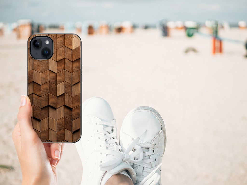 Onze houten hoesjes, niet letterlijk natuurlijk, maar onze design hoesjes met een bedrukking van houtprint zijn erg populair. Daarom werd het tijd voor een uitbreiding van onze collectie houten hoesjes. Hoe tof is dit wooden cubes design? Gegarandeerd dat jij met een uniek hoesje rond loopt! Dit design wordt geprint op een Houten Print Telefoonhoesje speciaal op maat gemaakt voor de iPhone 15 Plus. Het ligt prettig in de hand en is licht van gewicht. Het is een mix van hardcase en TPU. Deze combinatie samen zorgt wat ons betreft voor een perfect hoesje als je van niet te veel poespas houdt. Alleen de achterkant van je telefoon wordt beschermd. Daarom adviseren wij om dit hoesje in combinatie met een screenprotector te gebruiken. Bestel vandaag nog dit toffe wooden cubes hoesje!