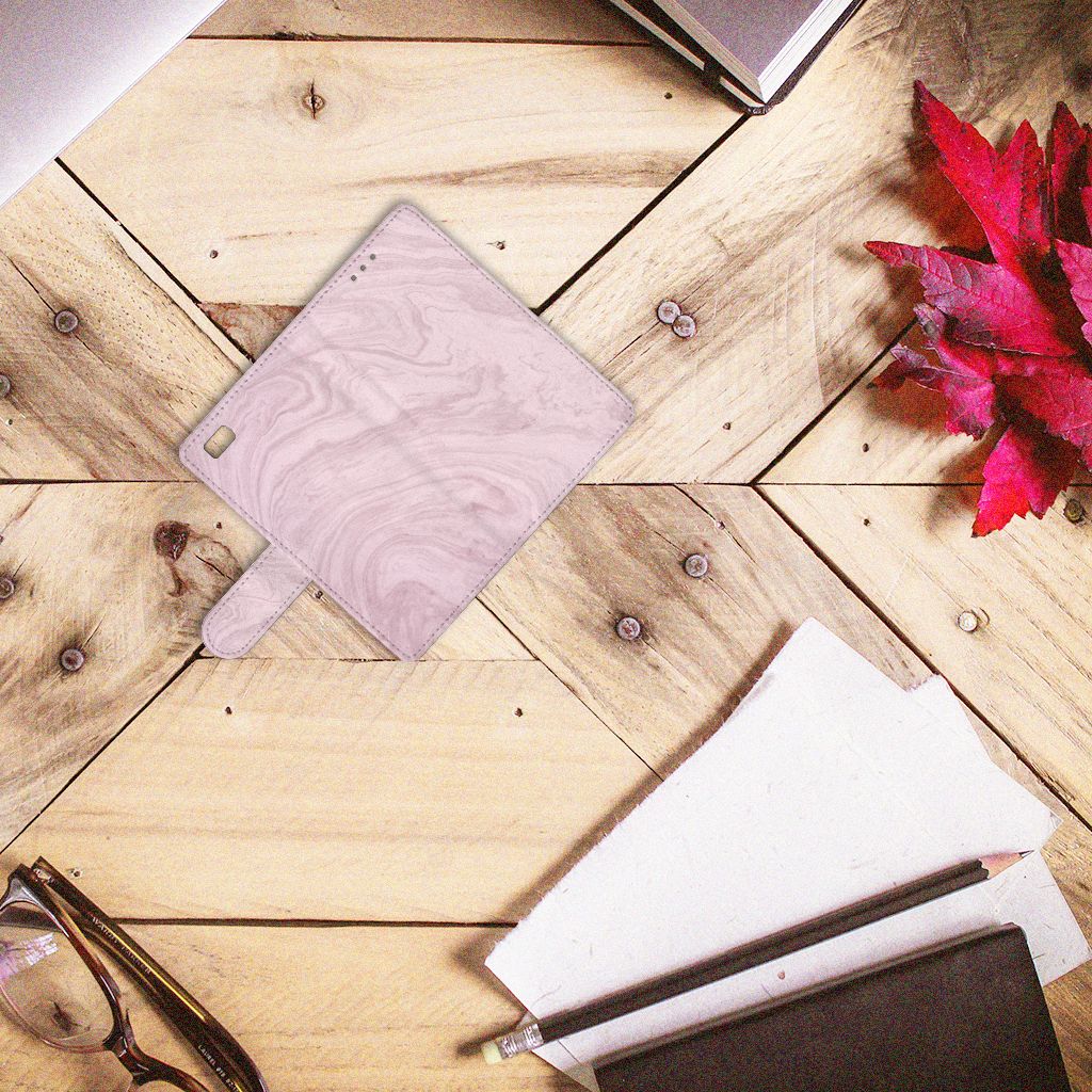 Huawei Ascend P8 Lite Bookcase met magnetische sluitclip Marble Pink