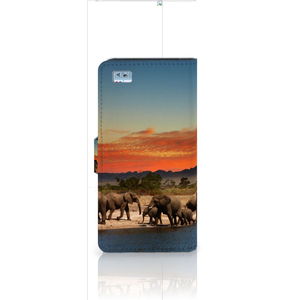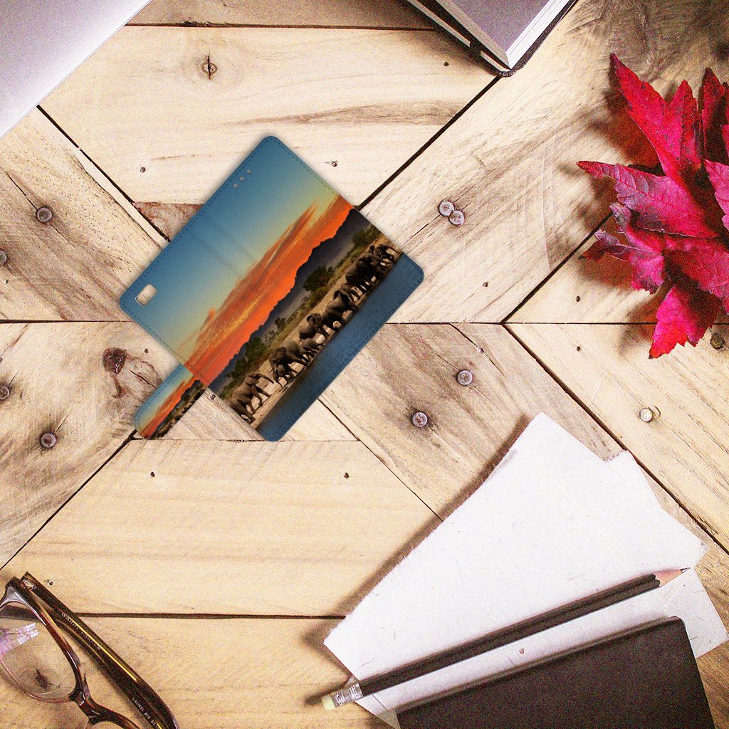 Huawei Ascend P8 Lite Telefoonhoesje met ruimte voor 3 pasjes Olifanten