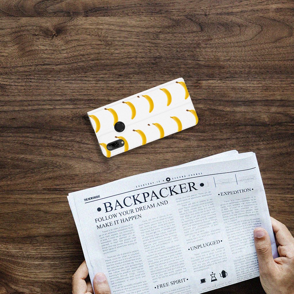 Bananen zitten tjokvol natuurlijke energie-oppeppers. Fructose, glucose, vezels… om er maar eens een paar te noemen. Een banaan is zo’n energiebom, dat wanneer je er twee eet je genoeg energie verzameld hebt om anderhalf uur vol te sporten. Deze vrucht geeft power, daarom misstaan ze ook niet op deze leuke Huawei P Smart (2019) Flip Style Cover. Jouw smartphone blijft zijn kracht behouden als je kiest voor dit design hoesje met bananen. Het grijswit geblokte patroon op de achtergrond geeft nog wat extra’s aan de banaan. Altijd als een print van een banaan op je hoesje willen hebben? Dit is je kans. De bananen staan op een stand case. Deze case beschermt jouw telefoon aan alle kanten en beschikt over een 1 opbergvakje en een speciale standaard. Met het aantal bananen dat op dit hoesje staat heb je energie voor een hele maanden of misschien wel een paar maanden. Het hoesje wordt afgesloten met een magneet aan de binnenzijde. De houder aan de binnenzijde is van TPU.