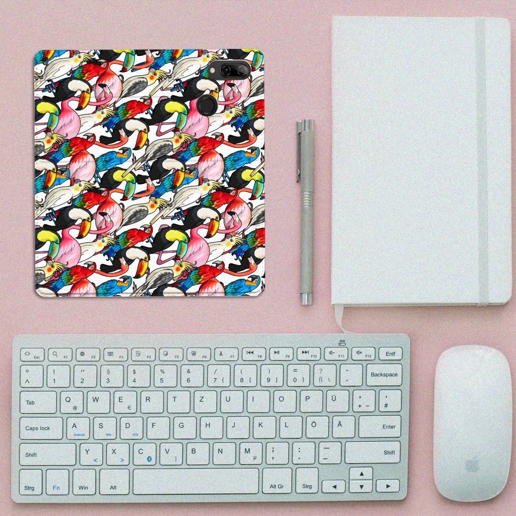 Dit exotische hoesje vol prachtige vogels is een genot voor het oog. Dankzij de felgekleurde toekans, papegaaien, flamingo’s en kaketoes op dit design word je meteen vrolijk als je naar dit hoesje kijkt. Je waant je meteen in de tropen met dit bonte gezelschap tegen een witte achtergrond. Het ontwerp staat op een Hoesje maken voor de Huawei P Smart (2019). Dit populaire smartphonehoesje met het beton-design heeft één vakje voor een pasje of briefgeld en is aan alle zijden bedrukt. Met de standcase zet je je telefoon gemakkelijk neer, zodat je je handen vrij hebt als je bijvoorbeeld een video wilt kijken. De binnenkant van de standcase is van grijs PU-leer. Dat is fijn, omdat je daardoor niet snel vlekken ziet op je hoesje.