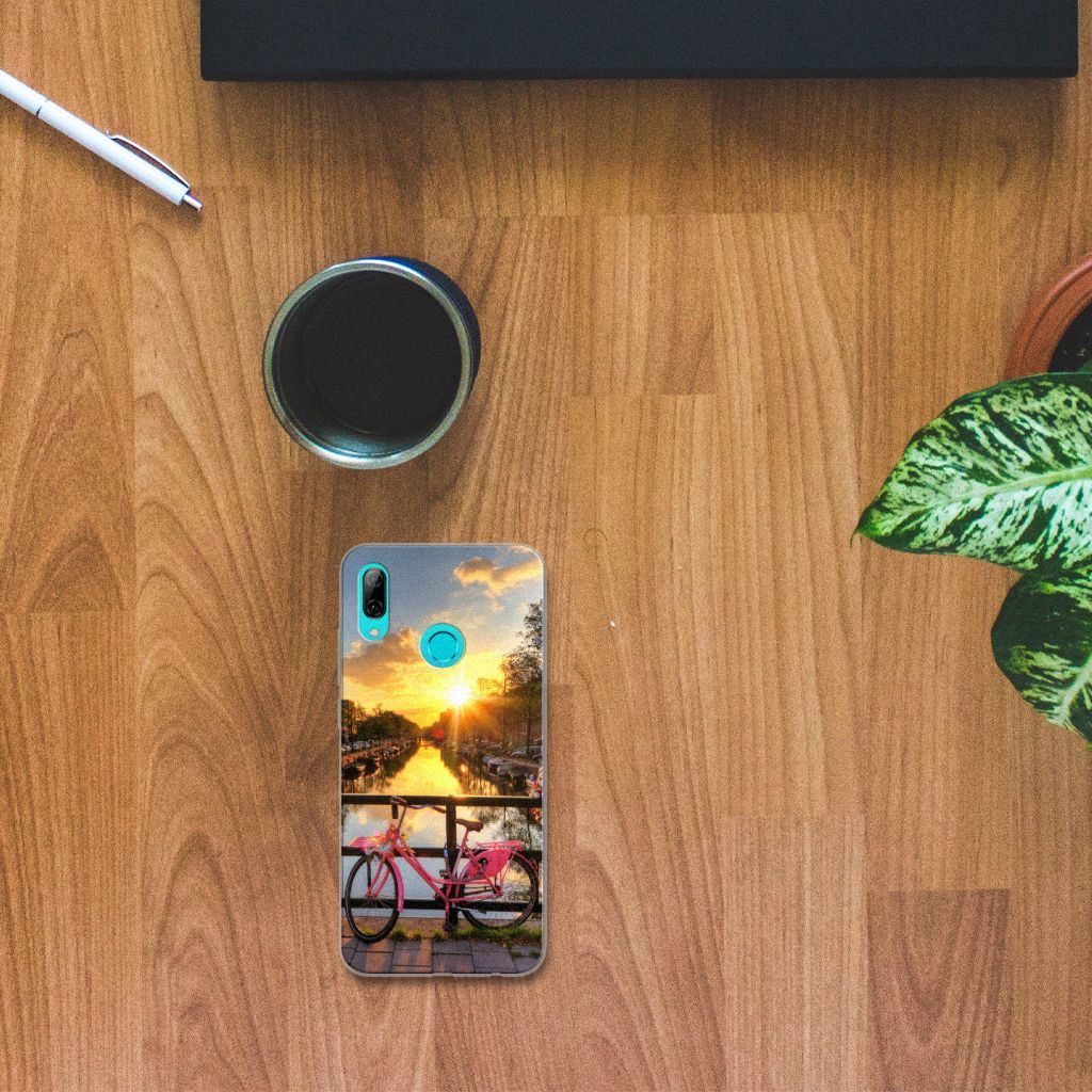 Amsterdam is meer dan ooit een toeristische trekpleister. Een bezoek aan de hoofdstad is niet compleet als je niet aanlegt bij de Amsterdamse Grachten. Ze zijn een symbool van de stad en hebben een enorme culturele en historische waarde. Daarom kunnen ze natuurlijk niet ontbreken in onze collectie design hoesjes. Dit schitterende design hoesje met Amsterdamse grachten tref je enkel en alleen aan bij B2C Telecom. De ondergaande zon en de fleurige en fraaie bloempakketten zorgen voor een prachtig totaalplaatje. Amsterdam is wereldberoemd om haar prachtige grachten uit de zeventiende eeuw. Dit smartphone hoesje is hier een eerbetoon aan. Het design staat op een TPU case. Dit Huawei P Smart 2019 Siliconen Back Cover wordt alleen aan de bovenkant bedrukt en is zeer flexibel. De randen van het hoesje blijven transparant.