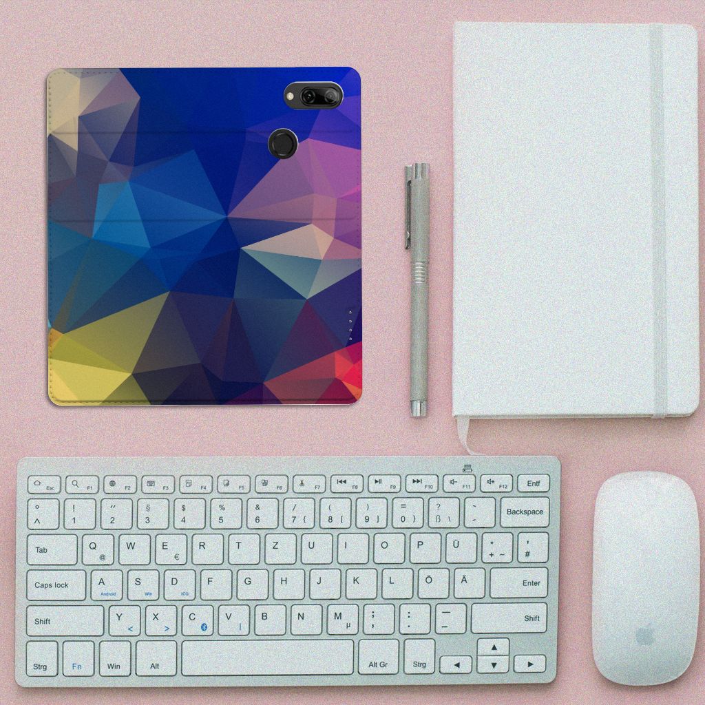 Ben je een liefhebber van abstracte hoesjes? Dan zit je met dit fraaie telefoonhoesje met Polygon Dark design voor je Huawei P Smart (2019) zeker goed. Het ontwerp springt in het oog door de naadloos op elkaar aansluitende veelhoeken – beter bekend als polygonen. Door hun asymmetrische karakter krijgt het Stand Case een bijzondere uitstraling en wordt je blik ernaartoe gezogen als door het beste abstracte schilderij. Het trendy uiterlijk en de warme kleuren zorgen ervoor dat het hoesje aansluit op vrijwel elke smaak en situatie. Gelukkig steel je niet alleen met het design de show, maar het beschikt ook over een 1 pashouder en een speciale standaard. Het hoesje wordt afgesloten met een magneet aan de binnenzijde. De houder aan de binnenzijde is van TPU. Alle zijden worden bedrukt.