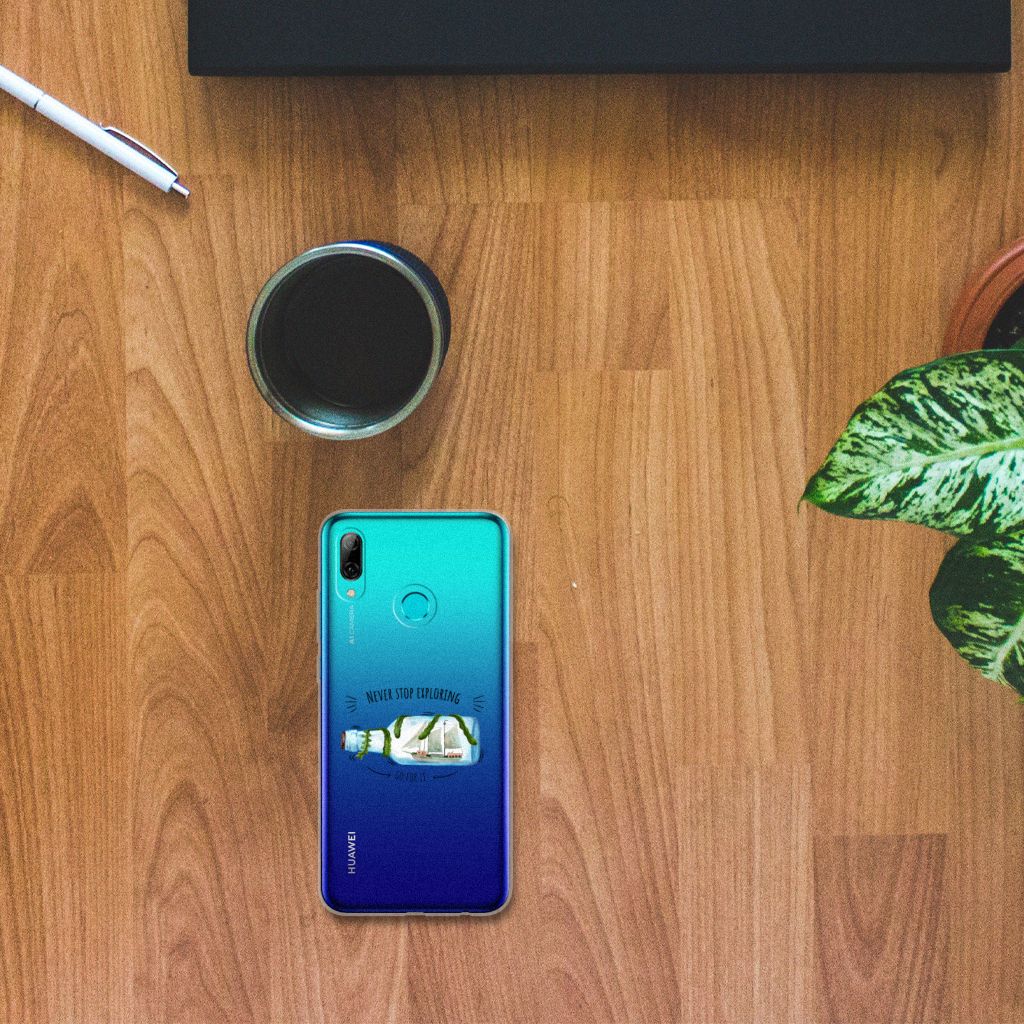 Dit leuke design met een schip in een fles is voor de echte avonturier of reiziger. Dankzij de tekst ‘Never stop exploring: Go for it’ word je altijd herinnerd aan het feit dat het volgende avontuur weer op de loer ligt! Dit design staat op een Telefoonhoesje met Naam voor je Huawei P Smart 2019. TPU is flexibel en heel erg sterk. Zo is je telefoon aan de achterkant en de randen heel goed beschermd. De case is aan de bovenkant bedrukt, de randen blijven transparant. Het TPU-hoesje is perfect te combineren met een screenprotector, zo zijn je telefoon en je beeldscherm altijd goed beschermd.
