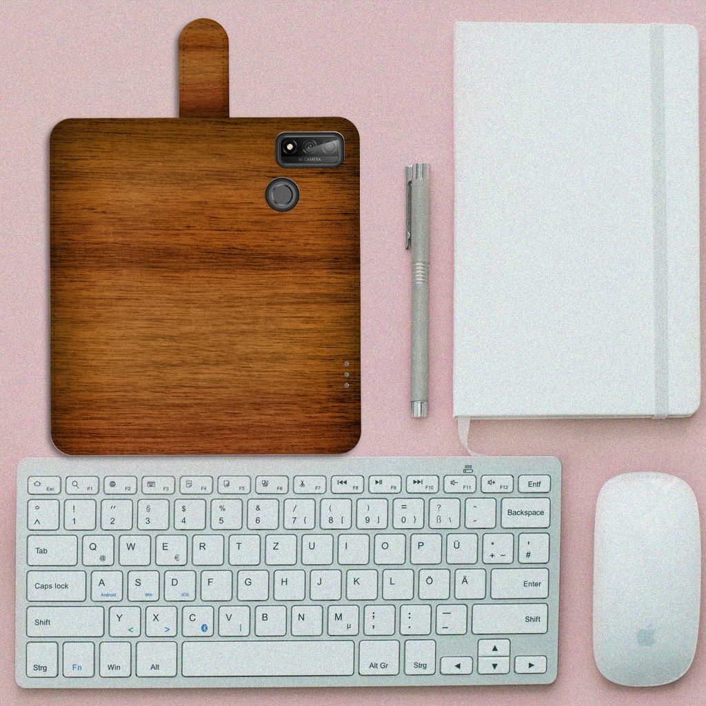 Huawei P Smart 2020 Book Style Case met pasjeshouder Donker Hout