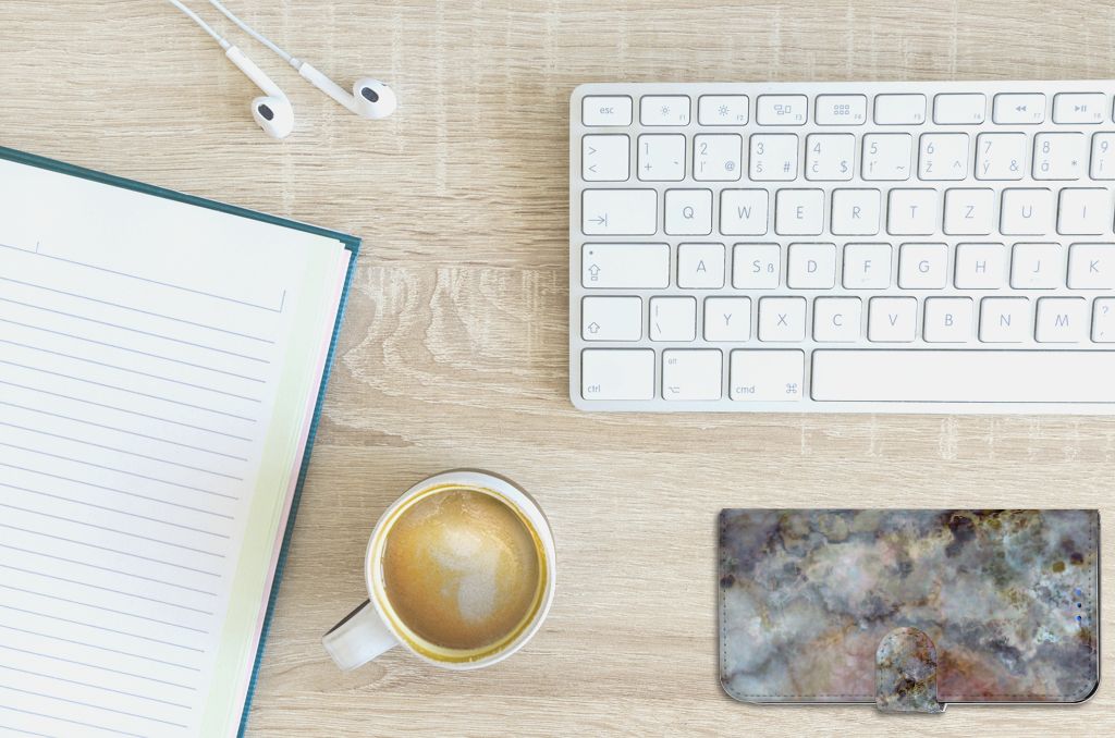 Huawei P Smart 2020 Bookcase met ruimte voor 3 pasjes Marmer Grijs
