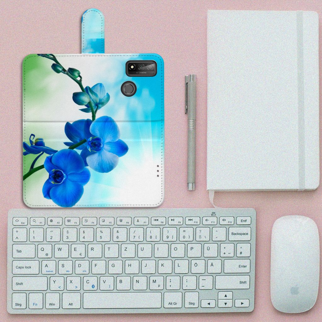 Huawei P Smart 2020 Hoesje met magnetische sluitclip Orchidee Blauw