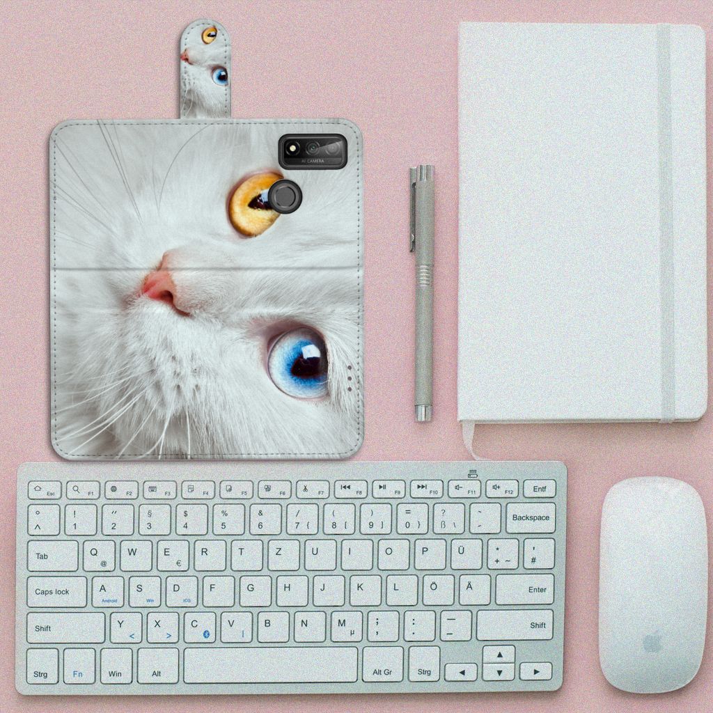 Huawei P Smart 2020 Telefoonhoesje met magnetisch lipje als sluiting Witte Kat