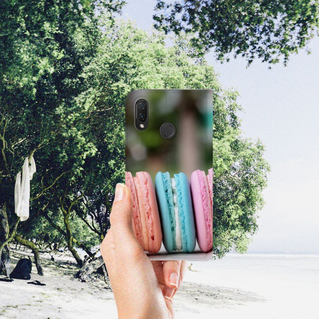 Dit stand hoesje met macarons is een zeer opvallende bescherming voor jouw smartphone. Macarons zijn Franse koekjes: kleine, rond en luchtig. Ze zijn aan elkaar geplakt met een zachte vulling. Ze worden in veel verschillende smaken gemaakt, herkenbaar aan de verschillende kleuren zoals chocolade (donkerbruin), mokka (middenbruin), kersen (rood), pistache (groen), aardbei (roze), framboos (karmijn), citroen (geel) en kokos (roomwit). Deze kleuren kun je natuurlijk ook zien op dit fraaie design hoesje met macarons. Heb je altijd al een Huawei P Smart Plus Flip Style Cover willen hebben met macarons? Grijp dan nu je kans. Deze case heeft zeer veel goede eigenschappen, zoals 1 opbergvakje en een magnetische sluiting aan de binnenkant. Dit design hoesje met macarons wordt aan alle zijden bedrukt. De houder aan de binnenkant van het hoesje is van TPU. De case heeft ook een handige standaard.
