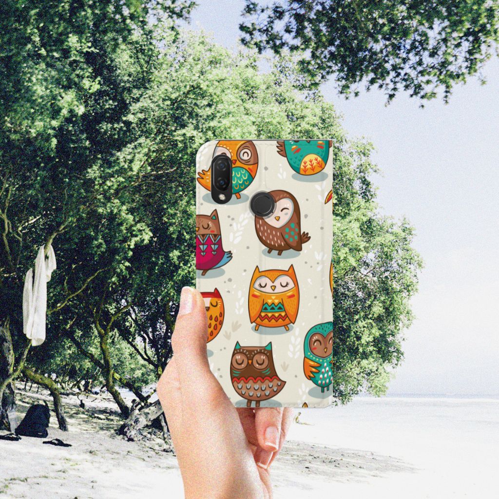 Deze Huawei P Smart Plus Hoesje maken met Vrolijke Uilen is echt iets voor de nachtbrakers onder ons. De uil is zoals je weet bij uitstek een vogel die in de nachtelijke uren actief is. Ben jij ook iemand die s ’nachts tot leven komt, dan is deze stand case met uilen in felle kleuren echt iets voor jou. Als je tot in de late uurtjes op stap bent, komt het goed uit dat jouw smartphone aan alle kanten goed is beschermd met deze stand case met uilen. De case met uilen heeft een magnetische sluiting aan de binnenkant, waardoor de hoes niet openklapt als die uit je handen valt. Jouw creditcard of pinpas heb je als het goed is veilig opgeborgen in het vakje aan de binnenzijde. De houder aan de binnenzijde van de case met print van uilen is van het flexibele TPU. De wat ruigere types hebben veel baat bij deze stand case met uilen in felle kleuren.