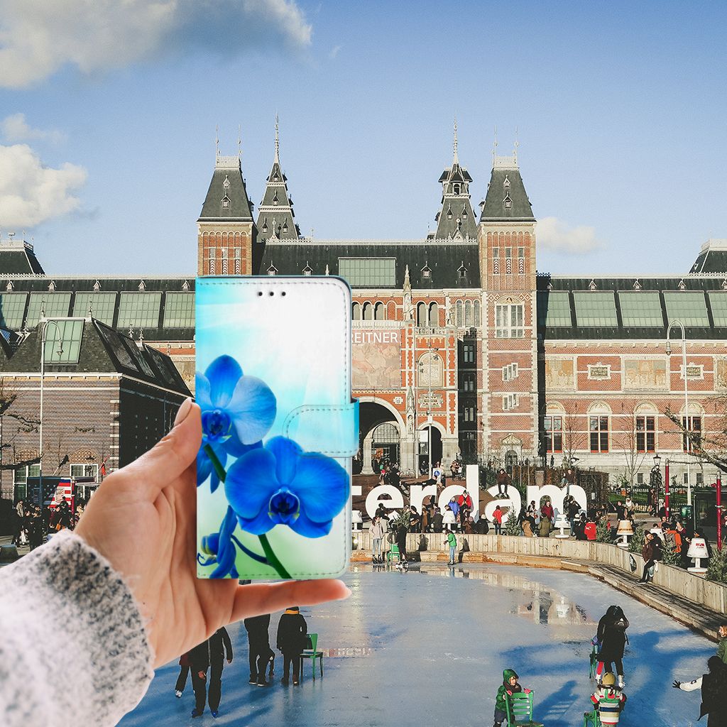 Huawei P10 Lite Hoesje met magnetische sluitclip Orchidee Blauw