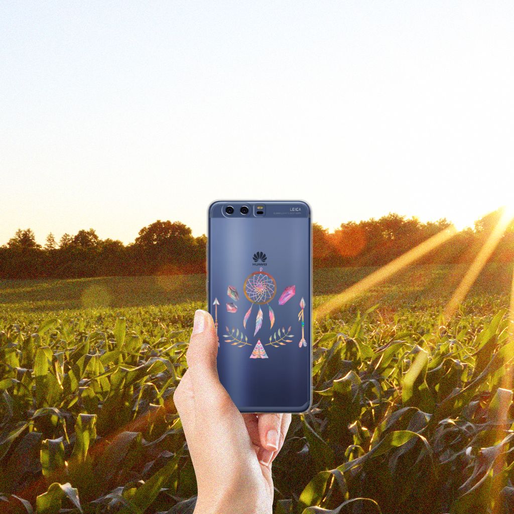Een dromenvanger werd lang geleden al door een indianenvolk in Noord-Amerika gebruikt om nare dromen te weren. Nu nog hangen mensen over de hele wereld dromenvangers boven hun bed. Maar ook op een telefoonhoesje staat zo’n boho dreamcatcher heel mooi. Dit mooie design dat bestaat uit een tipi, pijlen en dromenvanger heeft veel verschillende prachtige kleuren. Maar omdat het ontwerp minimalistisch en klein is, is het design toch subtiel te noemen. Dit ontwerp staat op een Telefoonhoesje met Naam voor je Huawei P10 Plus. TPU is flexibel en heel erg sterk. Zo is je telefoon aan de achterkant en de randen heel goed beschermd. De case is aan de bovenkant bedrukt, de randen blijven transparant. Het TPU-hoesje is perfect te combineren met een screenprotector, zo zijn je telefoon en je beeldscherm altijd goed beschermd.