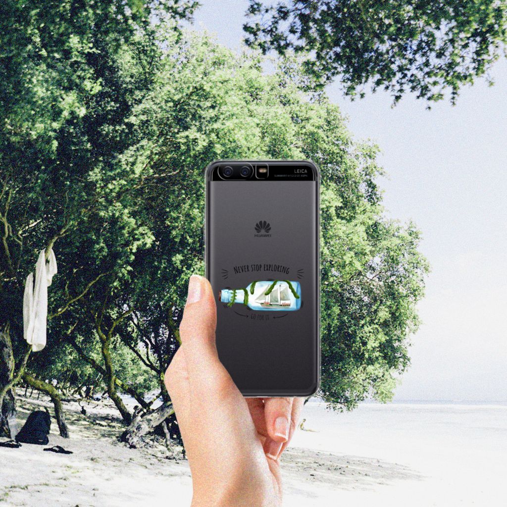 Dit leuke design met een schip in een fles is voor de echte avonturier of reiziger. Dankzij de tekst ‘Never stop exploring: Go for it’ word je altijd herinnerd aan het feit dat het volgende avontuur weer op de loer ligt! Dit design staat op een Telefoonhoesje met Naam voor je Huawei P10. TPU is flexibel en heel erg sterk. Zo is je telefoon aan de achterkant en de randen heel goed beschermd. De case is aan de bovenkant bedrukt, de randen blijven transparant. Het TPU-hoesje is perfect te combineren met een screenprotector, zo zijn je telefoon en je beeldscherm altijd goed beschermd.