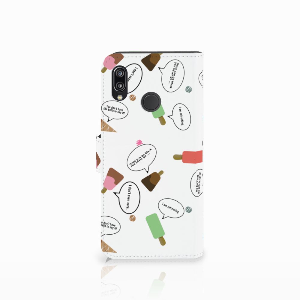 Van dit vrolijke Huawei P20 Lite Book Cover met daarop verschillende soorten ijsjes met tekstwolkjes krijg je sowieso een vrij en zomers gevoel. De zomer komt naar je toe met deze print van ijsjes met tekstwolkjes. Ben je op het strand, dan ontbreekt een lekker ijsje natuurlijk niet. Net zoals je je smartphone bij de hand hebt, met daaromheen een design hoesje met bijzondere ijsjes en tekstwolkjes. Jouw telefoon kan dan de bescherming in de vorm van een boekhoesje met ijsjes zeer goed gebruiken. Alle zijden van dit hoesje worden bedrukt met ijsjes en tekstwolkjes. De case heeft een lipje aan de buitenzijde voor het afsluiten van de telefoon en de houder aan de binnenzijde is van TPU. Onder alle weersomstandigheden zal deze case met verschillende opbergvakjes perfect functioneren, ook op het strand met een ijsje in je hand.