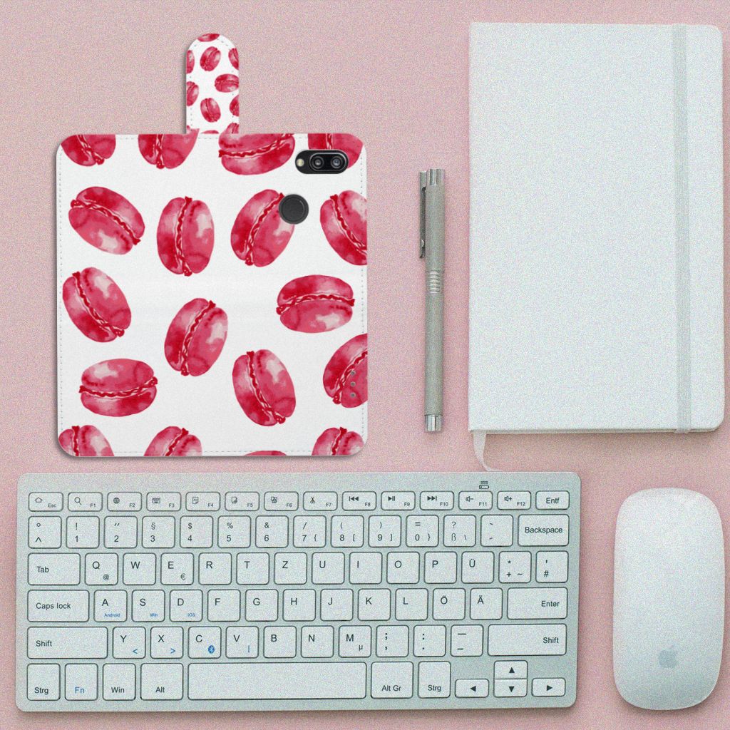 Dit hoesje met Pink Macarons is een zeer opvallende bescherming voor jouw smartphone. Macarons zijn Franse koekjes: kleine, rond en luchtig. Ze worden in veel verschillende smaken gemaakt, herkenbaar aan de verschillende kleuren zoals chocolade (donkerbruin), mokka (middenbruin), kersen (rood), pistache (groen), aardbei (roze), framboos (karmijn). Deze kleuren kun je niet allemaal zien op dit fraaie design hoesje met roze macarons. Heb je altijd al een Huawei P20 Lite Book Cover willen hebben met roze macarons? Grijp dan nu je kans. Een boekhoesje heeft zeer veel goede eigenschappen, zoals opbergvakjes aan de binnenkant en een magnetische sluiting in de vorm van een lipje aan de buitenzijde. Dit design hoesje met roze macarons wordt aan alle zijden bedrukt, zelfs het lipje krijgt een afbeelding van een roze macaron. De houder aan de binnenkant van het hoesje is van TPU.