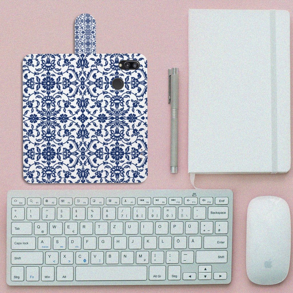Huawei P20 Lite Hoesje met ruimte voor drie pasjes Flower Blue