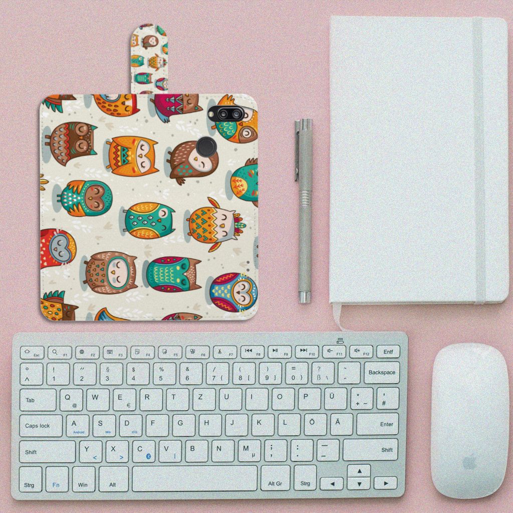 Huawei P20 Lite Telefoonhoesje met ruimte voor drie pasjes Vrolijke Uilen