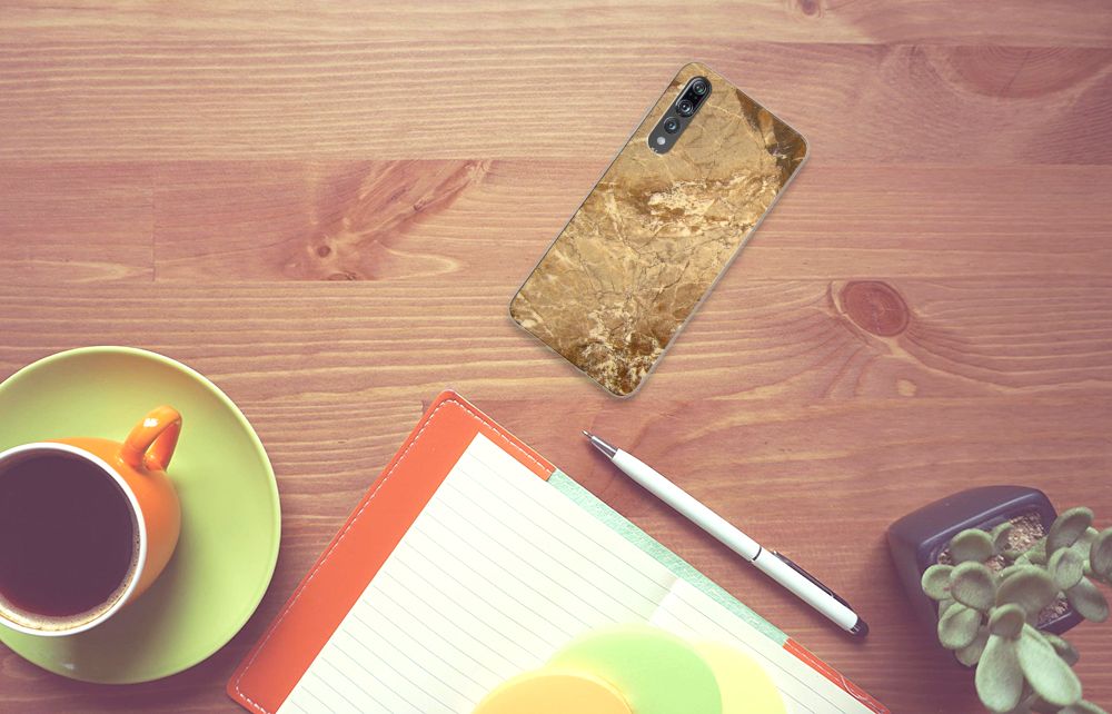 Dit design hoesje met Marmer in lichtbruine kleur is voor de artistiekelingen onder ons. De Grieken en Romeinen wisten het marmer al te waarderen door het in de bouw toe te passen. Naast het witte marmer zijn de diverse soorten marmer in een gevarieerde kleurensamenstelling te krijgen. We hebben verschillende mooie kleuren op design hoesjes gezet, zoals in dit geval het lichtbruine marmer. Dit is een Huawei P20 Pro TPU Siliconen Hoesje met marmer in lichtbruine kleur. Het marmer wordt bedrukt op de voorkant van een tpu case, die beschikt over opstaande randen aan de voorkant en heel goed combineert met een screenprotector van glas of van folie. Door de rijkdom aan kleuren en varianties in afwerking kunnen ontwerpers met marmer schitterende architectonische projecten realiseren. Wij hebben hetzelfde gedaan en onze ontwerper veel vrijheid geboden. Het resultaat zie je terug in deze tpu case met lichtbruin marmer, die jouw smartphone goed beschermt. De zijkanten van de case worden niet bedrukt met het lichtbruine marmer.