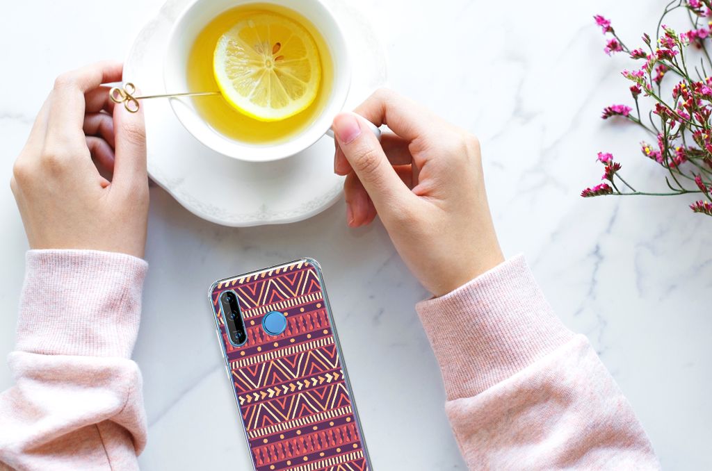 Ben je op zoek naar een uniek telefoonhoesje voor je Huawei P30 Lite? Dan ben je bij B2C Telecom aan het juiste adres! Speciaal voor jou hebben we dit prachtige Aztec Purple design in onze collectie hoesjes opgenomen. Het design wordt bedrukt op een Doorzichtige Silicone Hoesje en is gemaakt van flexibel rubber. Het hoesje is perfect voor de actieve smartphonegebruiker door de opstaande randen/hoeken. Denk aan mensen die veel sporten, reizen of wandelen en net iets meer zekerheid willen als het op hun geliefde telefoon aankomt. Het design wordt alleen aan de bovenkant van het hoesje bedrukt en de randen blijven transparant. Aan de zijkanten zijn uitsparingen gemaakt waardoor je met gemak alle knoppen en poorten kunt bedienen. Wij adviseren om dit hoesje in combinatie met een screenprotector te gebruiken voor een langere levensduur van je telefoon. Wil je dit hoesje nog iets extra's geven? Voeg dan gratis je naam of een quote toe! Is dit design hoesje toch niet helemaal wat je zocht? Ontwerp dan zelf een hoesje in ons ontwerpprogramma.
