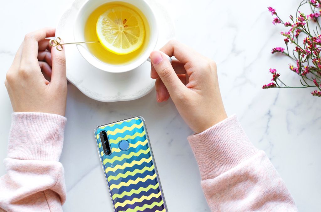 Ben je op zoek naar een uniek telefoonhoesje voor je Huawei P30 Lite? Dan ben je bij B2C Telecom aan het juiste adres! Speciaal voor jou hebben we dit prachtige Waves Yellow design in onze collectie hoesjes opgenomen. Het design wordt bedrukt op een Doorzichtige Silicone Hoesje en is gemaakt van flexibel rubber. Het hoesje is perfect voor de actieve smartphonegebruiker door de opstaande randen/hoeken. Denk aan mensen die veel sporten, reizen of wandelen en net iets meer zekerheid willen als het op hun geliefde telefoon aankomt. Het design wordt alleen aan de bovenkant van het hoesje bedrukt en de randen blijven transparant. Aan de zijkanten zijn uitsparingen gemaakt waardoor je met gemak alle knoppen en poorten kunt bedienen. Wij adviseren om dit hoesje in combinatie met een screenprotector te gebruiken voor een langere levensduur van je telefoon. Wil je dit hoesje nog iets extra's geven? Voeg dan gratis je naam of een quote toe! Is dit design hoesje toch niet helemaal wat je zocht? Ontwerp dan zelf een hoesje in ons ontwerpprogramma.