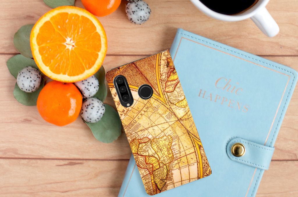 Met deze Huawei P30 Lite New Edition Book Cover met opdruk van een Kompas kun jij veilig elke richting op die je wilt, zonder dat je smartphone schade oploopt. Erg handig. Een kompas werkt overigens met magnetisme. Dat betekent dat een kompas af gaat wijken als die te dicht in de buurt van metaal of een andere magnetische bron komt. Deze stand case met kompas heeft ook een magneet aan de binnenzijde die ervoor zorgt dat de case niet zomaar open kan klappen. Onze stand cases met kompas bieden de allerbeste bescherming en zijn heel praktisch, wat blijkt uit onder meer het vakje aan de binnenkant en de standaard. Het kompas komt ook op alle zijden van de case te staan. Op deze stand case van leer en TPU (houder aan de binnenkant) kun je trouwens ook in no time zelf foto’s en teksten zetten.