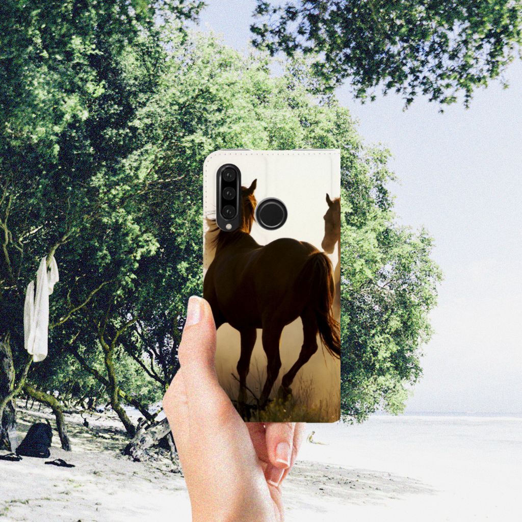 Voor de paardenliefhebbers onder ons hebben we onze collectie uitgebreid met dit design hoesje met print van paarden. Vroeger hield de mens vooral werkpaarden, inmiddels hebben we vriendschap gesloten met het paard. Vandaar dat het ook een favoriet dier is op onze smartphonehoesjes, zoals deze stand cases. Deze Huawei P30 Lite New Edition Hoesje maken met paarden is niet alleen super mooi en chique, het sluit ook nog perfect dankzij de magneet aan de binnenzijde. Verder heeft de case een TPU houder aan de binnenzijde en een houder voor een pasje. Zie je liever je eigen paard terug op een hoesje? Dat kan! Door zelf een uniek hoesje te ontwerpen, met eigen foto’s en teksten. De stand case met paarden wordt aan alle zijden bedrukt.
