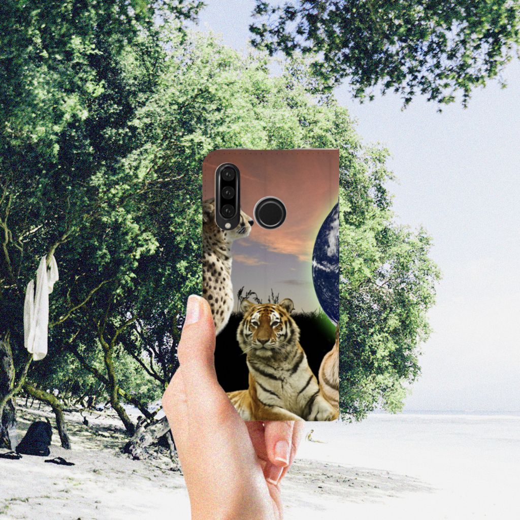 Deze standcase met roofdieren kan exclusief in het bezit van jou komen. Bovendien kun je hier zelf nog unieke teksten en/of beelden aan toevoegen. Je Hoesje maken krijgt dan een unieke identiteit. Roofdieren zoals tijgers op dit hoesje zijn voortdurend op zoek naar een geschikte prooi. De tijgers met aardbol op de achtergrond op deze stand case geven jouw Huawei P30 Lite New Edition een hele stoere uitstraling. Deze bijzondere case is van PU-leer (buitenzijde) en TPU (binnenzijde) en beschikt over een houder en een speciale standaard. Verder is deze stand case met roofdieren voorzien van een magnetische sluiting aan de binnenzijde. Je zorgt voor de perfecte bescherming van je smartphone met dit design hoesje met roofdieren met aardbol op de achtergrond.