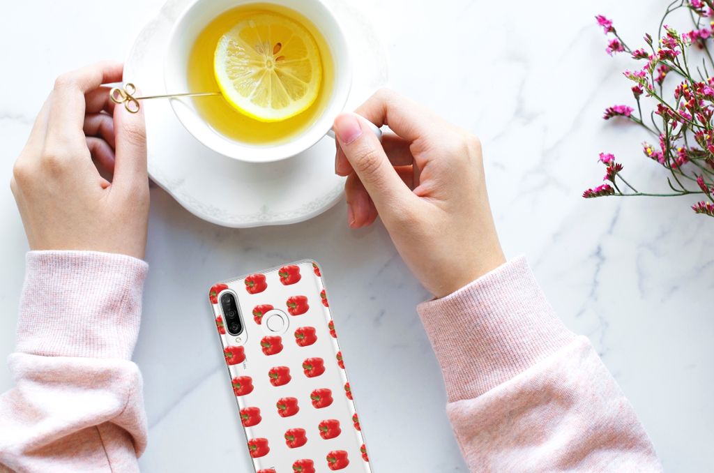 Er zit pit in jouw Huawei P30 Lite Siliconen Case dankzij dit design met rode paprika’s. Paprika’s zijn er in allerlei kleuren en vormen en ze hebben gemeen dat ze heel erg gezond zijn. De rode paprika’s op deze case staan op een grijs met witte geblokte achtergrond en vormen een opvallende verschijning. Heb jij ooit iemand in je nabije omgeving rond zien lopen met een design hoesje met rode paprika’s? Waarschijnlijk niet. Dit hoesje wordt alleen aan de bovenkant bedrukt met paprika’s en is zeer flexibel. De randen van het hoesje blijven transparant en worden niet bedrukt. Met dit hoesje past jouw telefoon altijd in je broekzak. Zeker weten dat je met dit hoesje met rode paprika’s een smartphone accessoire te pakken hebt waarmee je jezelf in de schijnwerpers zet. Als je andere kleuren paprika’s op je hoesje wilt, raden we je aan ons assortiment design hoesjes te bekijken of zelf een hoesje te ontwerpen.
