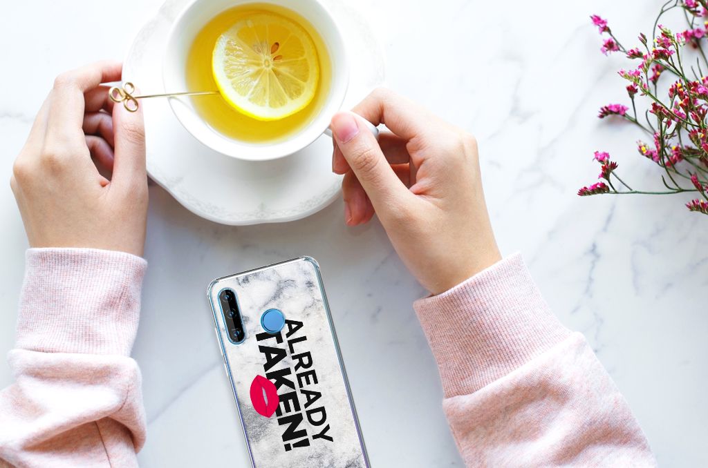 Ben je op zoek naar een uniek telefoonhoesje voor je Huawei P30 Lite? Dan ben je bij B2C Telecom aan het juiste adres! Speciaal voor jou hebben we dit prachtige Already Taken White design in onze collectie hoesjes opgenomen. Het design wordt bedrukt op een Telefoonhoesje met tekst en is gemaakt van flexibel rubber. Het hoesje is perfect voor de actieve smartphonegebruiker door de opstaande randen/hoeken. Denk aan mensen die veel sporten, reizen of wandelen en net iets meer zekerheid willen als het op hun geliefde telefoon aankomt. Het design wordt alleen aan de bovenkant van het hoesje bedrukt en de randen blijven transparant. Aan de zijkanten zijn uitsparingen gemaakt waardoor je met gemak alle knoppen en poorten kunt bedienen. Wij adviseren om dit hoesje in combinatie met een screenprotector te gebruiken voor een langere levensduur van je telefoon. Wil je dit hoesje nog iets extra's geven? Voeg dan gratis je naam of een quote toe! Is dit design hoesje toch niet helemaal wat je zocht? Ontwerp dan zelf een hoesje in ons ontwerpprogramma.