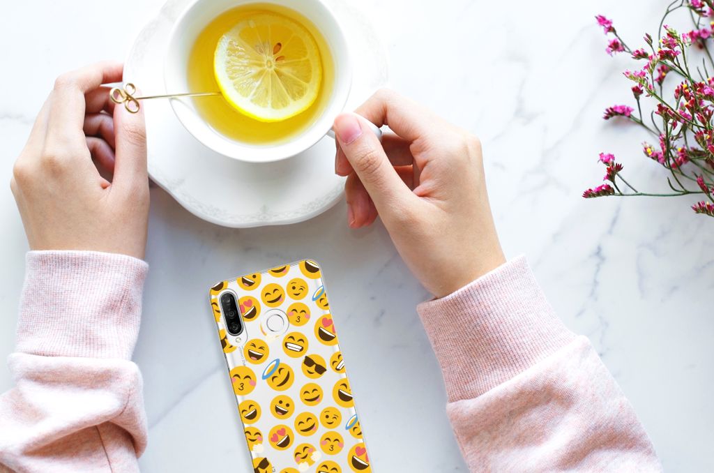Je gebruikt ze waarschijnlijk dagelijks: emoji’s. Daarom hebben we besloten ze op een design hoesje te zetten. De kleurrijke, vaak gele emoticons maken chatberichten net wat spontaner. Dat hebben we allemaal te danken aan Japan, waar de emoji’s die we zo goed kennen vandaan komen. Ondertussen zijn er meer dan 1800! Deze passen natuurlijk niet allemaal op een Huawei P30 Lite TPU bumper, maar we hebben de meeste gebruikte exemplaren erop gezet. Deze tpu case is voorzien van opstaande randen zodat het touchscreen van je telefoon beter is beschermd. Super handig. Het TPU zelf is zeer flexibel en is op maat gemaakt. We gebruiken emoji’s vaak om complete woorden te vervangen. Dit smartphone hoesje zegt dan ook meer dan duizend woorden kunnen. De tpu case wordt alleen aan de bovenzijde bedrukt met emoji’s. De zijkanten van de case worden niet bedrukt en blijven transparant.