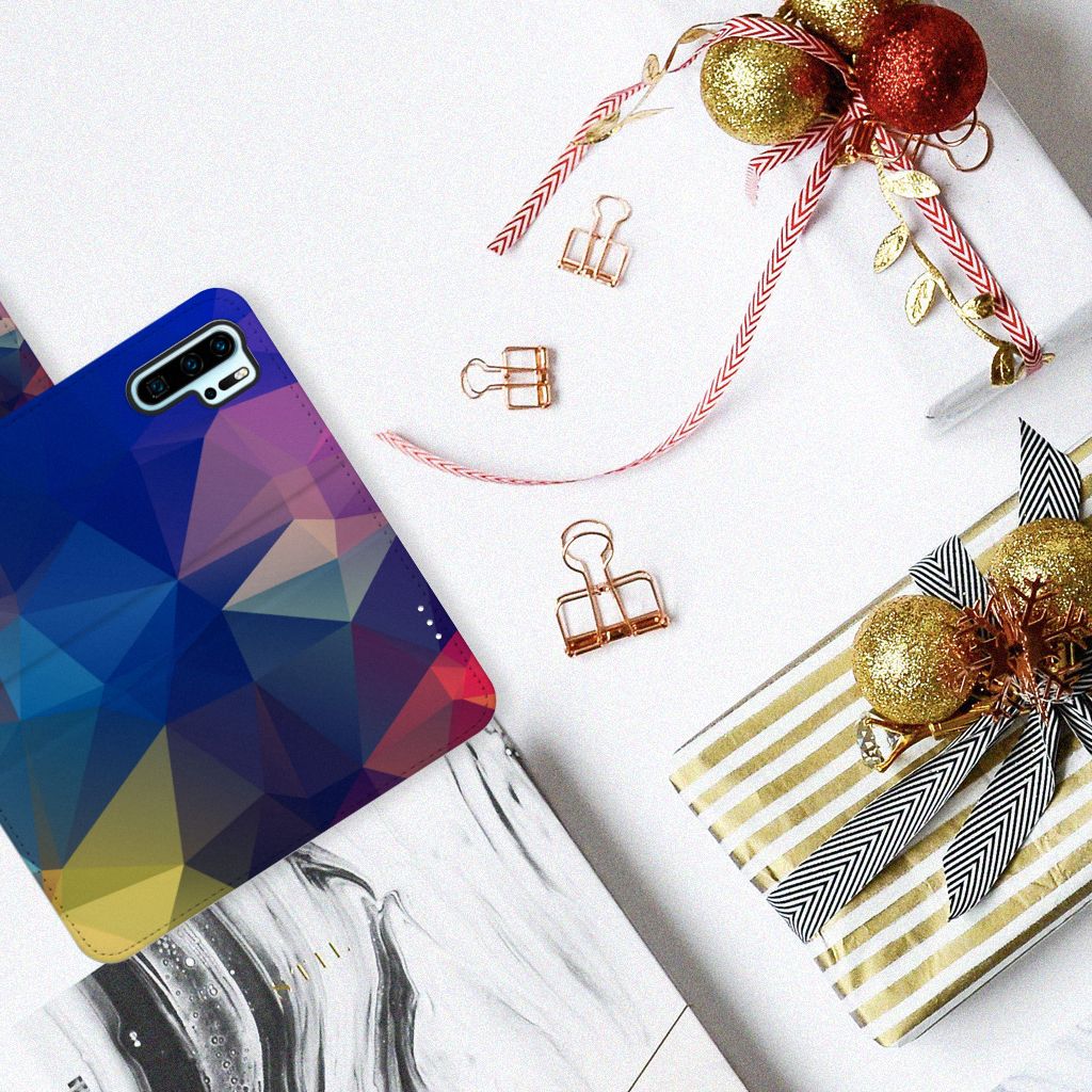 Huawei P30 Pro Book Case met ruimte voor 3 pasjes Polygon Dark