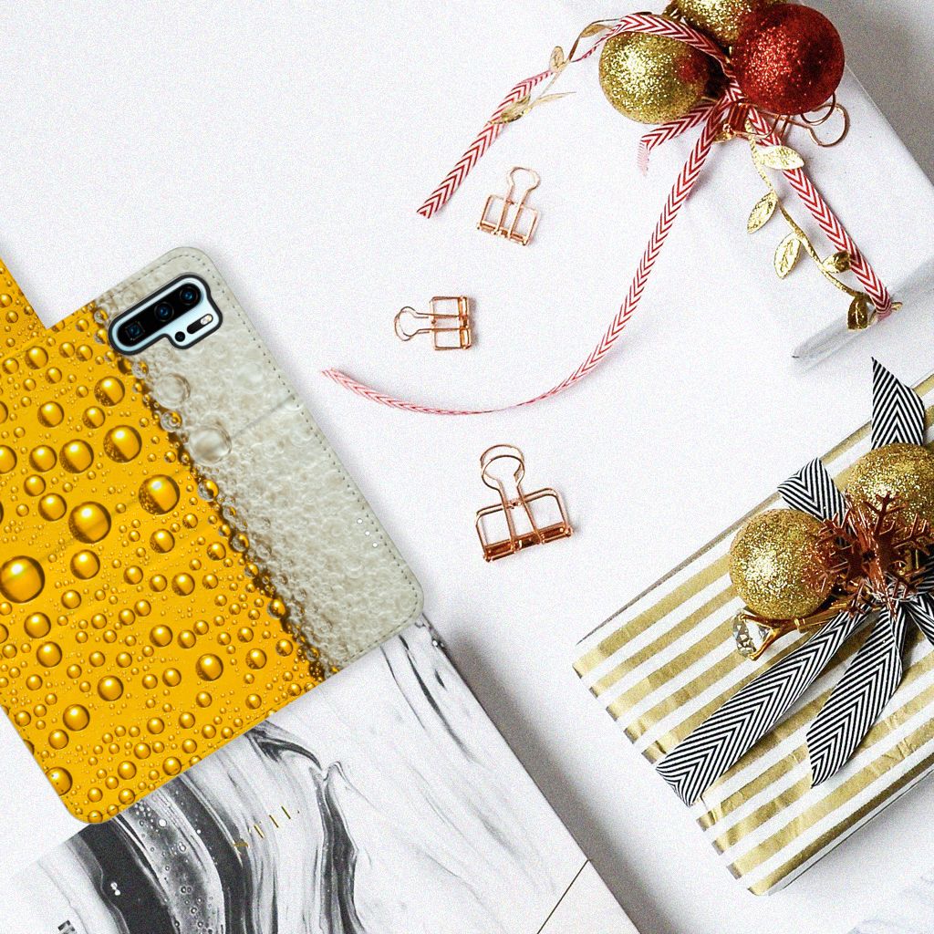 Huawei P30 Pro Bookcover met magnetische sluitclip Bier print