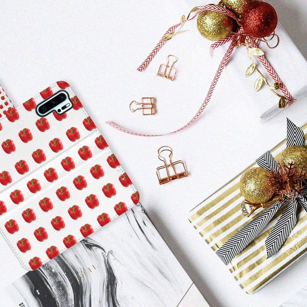 Er zit pit in jouw Huawei P30 Pro Book Cover dankzij dit design met rode paprika’s. Paprika’s zijn er in allerlei kleuren en vormen en ze hebben gemeen dat ze heel erg gezond zijn. De rode paprika’s op deze case staan op een grijs met witte geblokte achtergrond en vormen een opvallende verschijning. Heb jij ooit iemand in je nabije omgeving rond zien lopen met een design hoesje met rode paprika’s? Waarschijnlijk niet. Dit boekhoesje met rode paprika’s beschermt jouw telefoon aan alle zijden en beschikt over verschillende opbergvakjes voor pasjes en briefgeld. De case sluit perfect af met het magnetische lipje aan de buitenkant. Zeker weten dat je met dit hoesje met rode paprika’s een smartphone accessoire te pakken hebt waarmee je jezelf in de schijnwerpers zet. De houder aan de binnenzijde van het boekhoesje met rode paprika’s is van TPU. Als je andere kleuren paprika’s op je hoesje wilt, raden we je aan ons assortiment design hoesjes te bekijken of zelf een hoesje te ontwerpen.