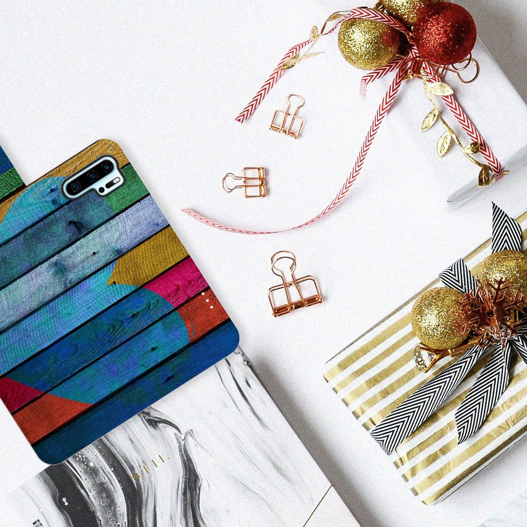 Huawei P30 Pro Bookstyle Case met pasjes Wood Heart