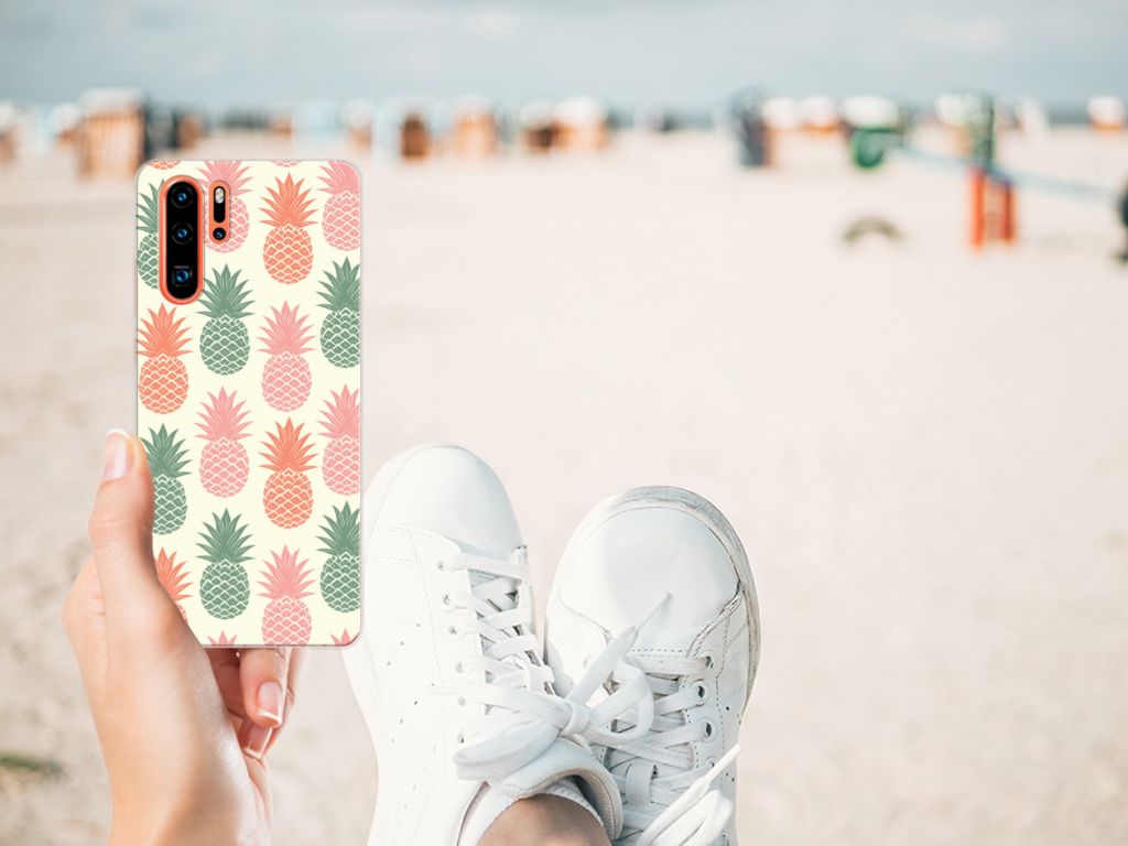 Ananas is een woord uit het Tupi, de taal van de Tupi-indianen, en betekent uitmuntende vrucht. Dit fruit van zeer hoge kwaliteit staat op onze superieure boekhoesjes, stand cases, hard cases en TPU cases. Jij blijft er gezond uitzien als je zo nu en dan een hap neemt van een Ananas , jouw smartphone blijft tip top in orde als je er een leuk telefoonhoesje omheen doet. Een ananas heeft stevig, veerkrachtig vruchtvlees. Een beetje te vergelijken met het TPU in onze hoesjes. TPU is elastisch materiaal, dat zeer buigzaam is. Vandaar dat het zeer schokbestendig is. Het ananas design staat op een staat op een TPU case. Deze Huawei P30 Pro Siliconen Case wordt alleen aan de bovenkant bedrukt en is zeer flexibel. De randen van het hoesje blijven transparant.