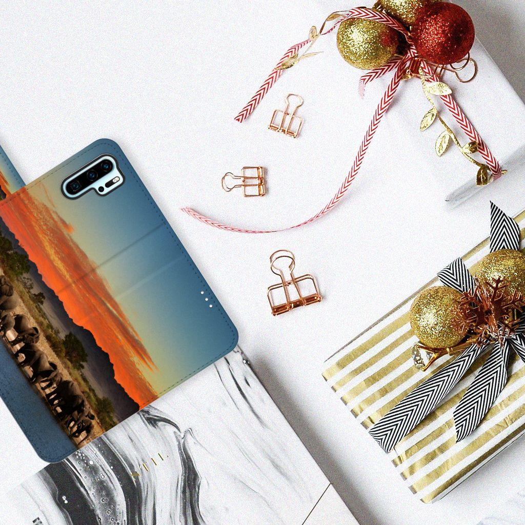Huawei P30 Pro Telefoonhoesje met ruimte voor 3 pasjes Olifanten