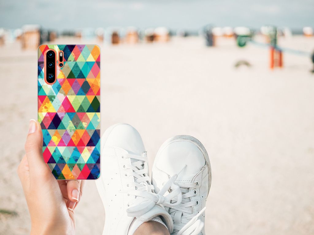 Van dit geruite design hoesje moet je een beetje houden. Maar als je het eenmaal in bezit hebt, ben je waarschijnlijk binnen no time verkocht. Het design heeft ruitjes in alle kleuren van de regenboog en door de grijze achtergrond kan het hoesje enigszins druk overkomen. Maar tegelijkertijd is dit de kracht van het hoesje. Met dit design hoesje Geruit zal je namelijk heel erg opvallen. Dit is voor veel vooral jonge smartphone gebruikers een belangrijk voordeel. Deze geruite print staat op een Huawei P30 Pro TPU bumper. Dit zeer flexibele smartphone hoesje heeft alle nodige uitsparingen en past altijd in je broekzak. De case is aan de bovenkant bedrukt, de randen blijven transparant.