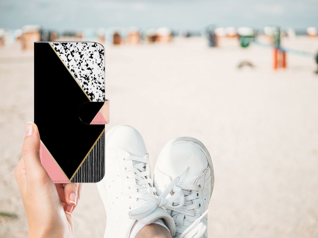 Huawei P40 Lite Bookcase met ruimte voor 3 pasjes Zwart Roze Vormen