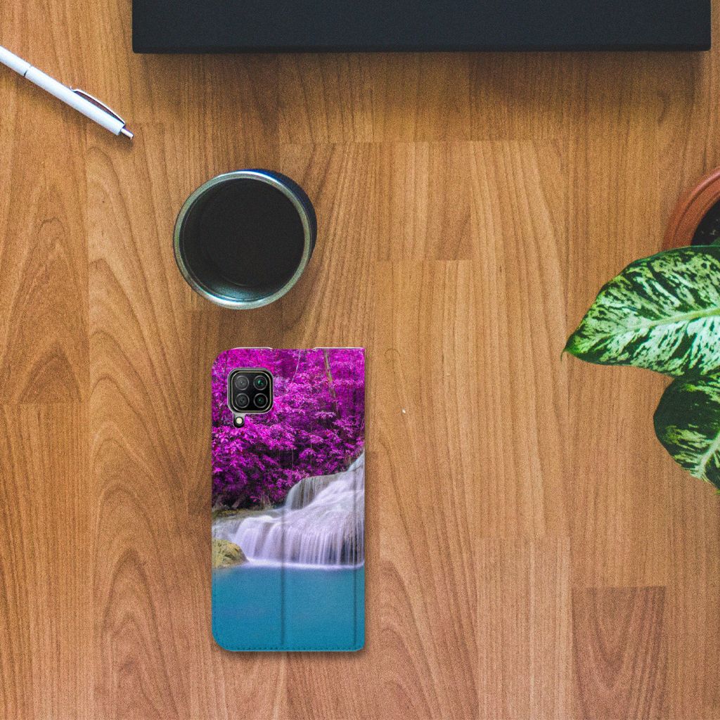 Van een waterval kun je een heel rustig gevoel krijgen, zeker als die op een Huawei P40 Lite Book Cover staat dat jouw smartphone perfect beschermt tegen allerlei vormen van schade zoals krassen, barsten en scheuren. In de buurt van een waterval ben je tijdens warme zomerdagen niet alleen verzekerd van aangename verkoeling, het is ook een bijzonder rustgevende ervaring. Uit onderzoek blijkt zelfs dat watervallen een helend effect hebben op allerlei aandoeningen. Extra bijzonderheid aan de stand case vormen de paarse bossen op de achtergrond. Dit smartphonehoesje beschermt jouw telefoon aan alle zijden en beschikt over een opbergvakje voor pasjes en briefgeld. De case sluit perfect af dankzij de magneten van binnen. De houder aan de binnenzijde is van TPU. Alle zijden van het hoesje worden bedrukt. Een mooiere waterval met paarse achtergrond kom je op geen enkel ander hoesje tegen.