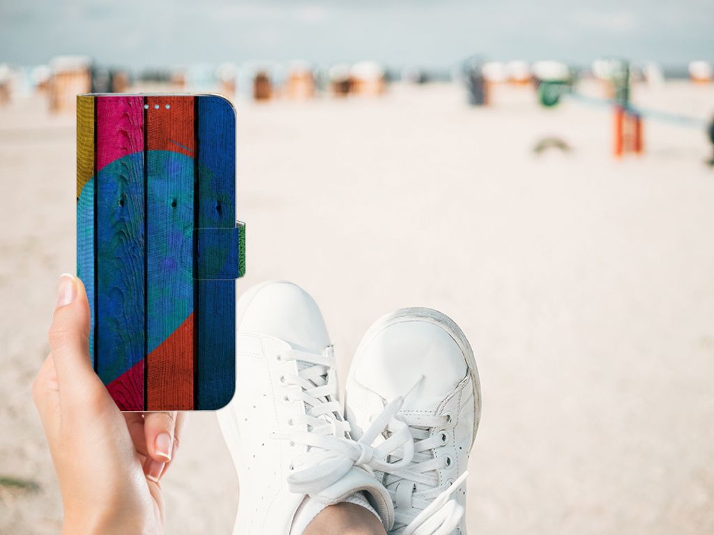 Huawei P40 Lite Bookstyle Case met pasjes Wood Heart