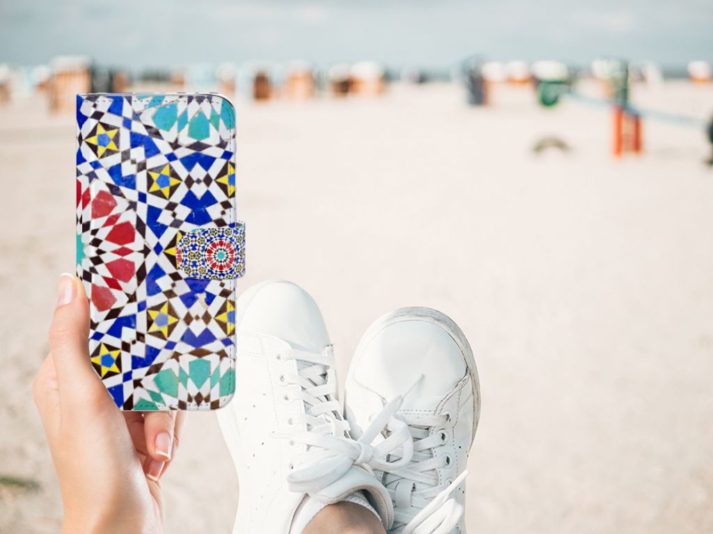 Aan design hoesjes met kunstvormen geen gebrek in onze uitgebreide collectie. Wat dacht je van dit design hoesje met Mozaïek . Dit is een kunstvorm waarbij een grote afbeelding wordt gemaakt uit een groot aantal kleine gekleurde steentjes (tesserae), die in een vloer of wand worden gemetseld. Deze gekleurde steentjes zie je terug op dit boekhoesje met design van mozaïek. Een boekhoesje is zo’n beetje de veiligste case die er bestaat. Een Huawei P40 Lite Bookcase met print zorgt voor een volledige bescherming van je smartphone en wordt aan alle zijden bedrukt met mozaïek. Een deel van de foto’s staat ook op het lipje aan de buitenzijde. Verder is de houder aan de binnenzijde van TPU. De Grieken en Romeinen beheersten de kunst al. Op diverse plaatsen in Europa zijn mozaïeken teruggevonden die tot op de dag van vandaag goed bewaard zijn gebleven. Met een hoesje met mozaïek blijft jouw telefoon in tact. Je pasjes en briefgeld kun je in de vakjes aan de binnenzijde stoppen