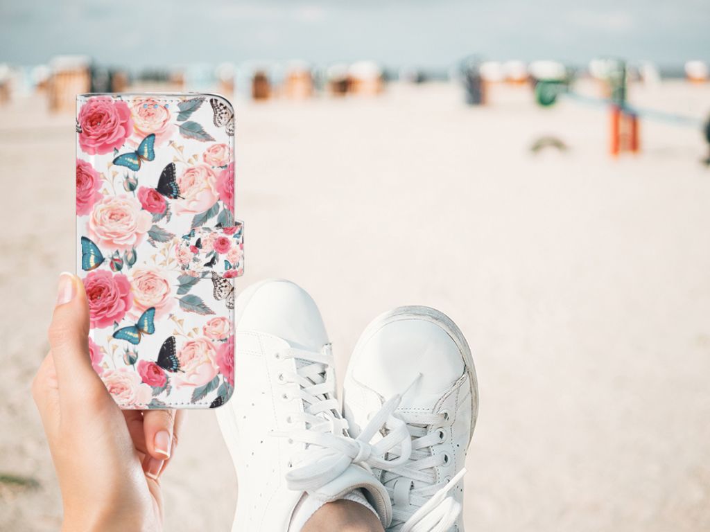 Huawei P40 Lite Hoesje gemaakt van TPU en kunstleer Butterfly Roses