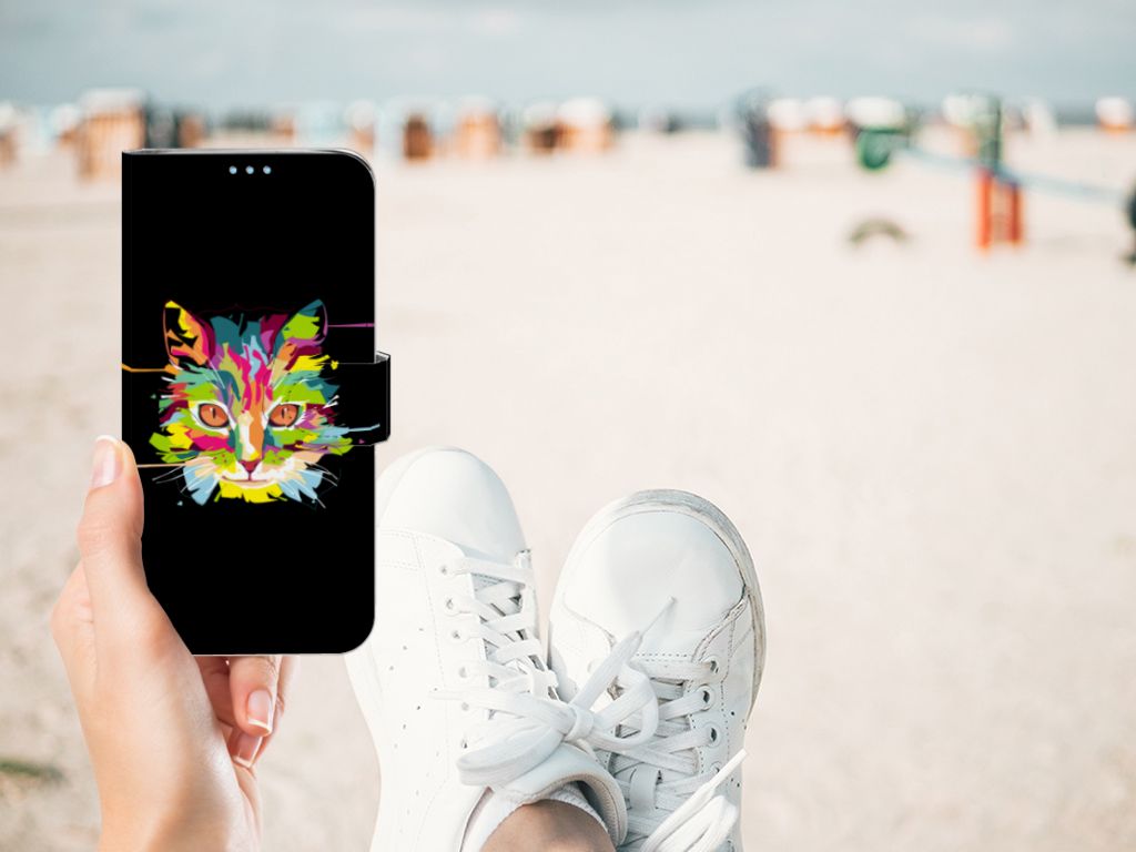 Als jij van katten houdt en op zoek bent naar een uniek hoesje, dan is dit het hoesje wat je wilt hebben. Op de voorkant van dit Leuk Hoesje vind je namelijk een mooie afbeelding van een kat in alle kleuren van de regenboog op een zwarte klassieke achtergrond. Naast dat het een mooi hoesje betreft, is het ook nog eens ontzettend handig. Zo kun je in deze bookcase wel twee á drie pasjes en briefgeld kwijt. Hiermee kun je jouw belangrijkste bezittingen op een plek bewaren in het boekhoesje en kun je jouw portemonnee voortaan thuislaten. Een bookcase heeft daarnaast ook nog het voordeel dat jouw telefoon aan alle zijdes wordt beschermd in dit leuke hoesje, dubbel zo handig dus!