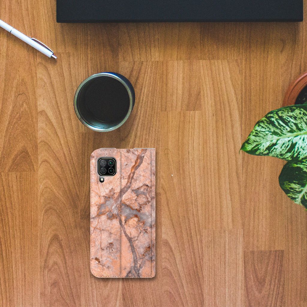 Dit design hoesje met Marmer Oranje is zeer geschikt voor jouw kostbare telefoon. Vanwege zijn prachtige lichtval en vastheid is marmer een zeer gewild bouwmateriaal. Wij kunnen inmiddels concluderen dat dit hoesje met oranje marmer ook zeer gewild is. Beloon jezelf en je telefoon met dit hele mooie Huawei P40 Lite Standcase. Naast het oranje marmer zijn er de diverse marmersoorten in een ruim kleurenpallet te krijgen. Deze stand case met marmer in oranje wordt bedrukt op alle zijden. De case beschikt over een vakje voor een pasje en toebehoren en een magnetische sluiting aan de binnenzijde. Verder heeft de case in oranje marmer een houder van TPU. Wij hebben onze designer veel vrijheid gegeven met het ontwerpen dit mooie hoesje. Het resultaat zie je terug in deze stand case met oranje marmer, dat de ideale bescherming is voor jouw smartphone. Des te mooi dat wij voor variatie hebben gekozen door een hoesje met oranje marmer aan de bieden.