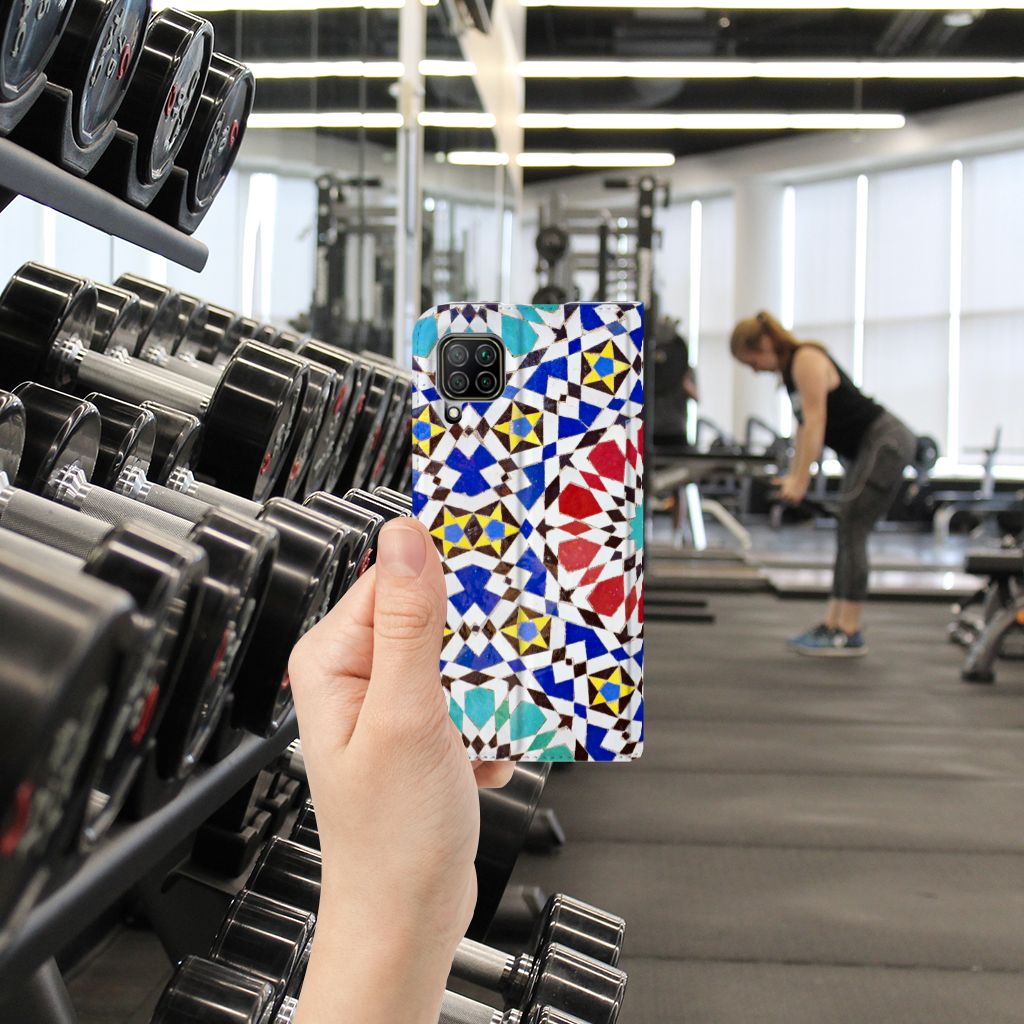 Aan design hoesjes met kunstvormen geen gebrek in onze uitgebreide collectie. Wat dacht je van dit design hoesje met Mozaïek . Dit is een kunstvorm waarbij een grote afbeelding wordt gemaakt uit een groot aantal kleine gekleurde steentjes (tesserae), die in een vloer of wand worden gemetseld. Deze gekleurde steentjes zie je terug op deze stand case met design van mozaïek. Een stand case is een van de veiligste cases die er bestaan. Een Huawei P40 Lite Standcase met print zorgt voor een volledige bescherming van je smartphone en wordt aan alle zijden bedrukt met mozaïek. Verder is de houder aan de binnenzijde van TPU. De Grieken en Romeinen beheersten de kunst al. Op diverse plaatsen in Europa zijn mozaïeken teruggevonden die tot op de dag van vandaag goed bewaard zijn gebleven. Met een hoesje met mozaïek blijft jouw telefoon in tact. Je pasje en kun je in het vakje aan de binnenzijde stoppen. De case heeft ook een standaard.