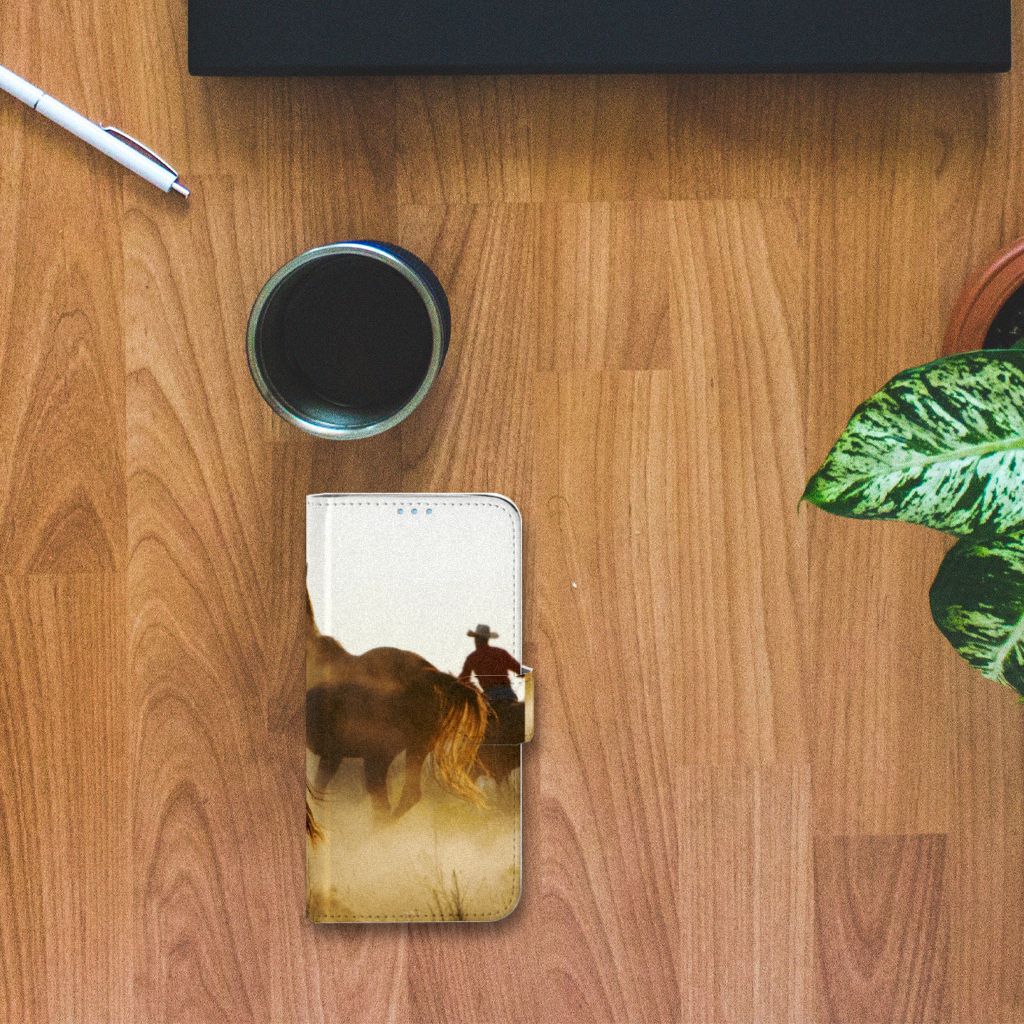 Voor de paardenliefhebbers onder ons hebben we onze collectie uitgebreid met dit design hoesje met print van een cowboy met paarden. Vroeger hield de mens vooral werkpaarden, inmiddels hebben we vriendschap gesloten met het paard. Vandaar dat het ook een favoriet dier is op onze smartphonehoesjes, zoals deze boekhoesjes. Dit Telefoonhoesje met Pasjes met paarden is niet alleen super mooi en chique, het sluit ook nog perfect dankzij het lipje aan de buitenzijde. Verder heeft de case een TPU houder aan de binnenzijde en houders voor pasjes en briefgeld. Zie je liever je eigen paard terug op een hoesje voor jouw Huawei P40 Lite? Dat kan! Door zelf een uniek hoesje te ontwerpen, met eigen foto’s en teksten. Het boekhoesje met paarden wordt aan alle zijden bedrukt.