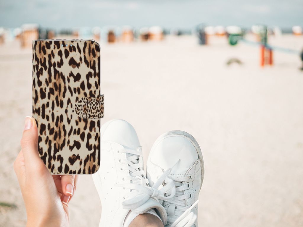 Huawei P40 Lite Telefoonhoesje met Pasjes en met magnetische sluitclip Leopard