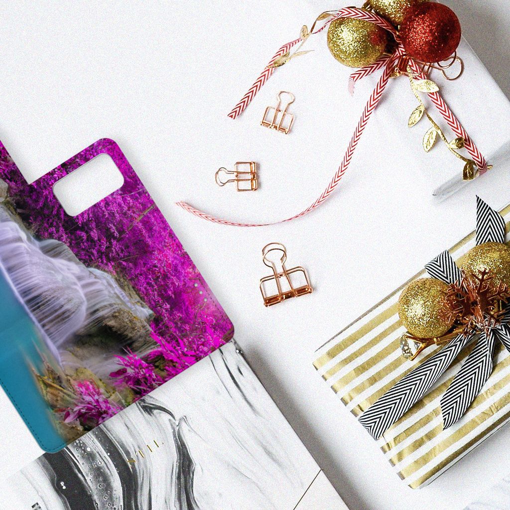 Op deze Huawei P40 Pro Flip Cover zie je een kalme waterval en de achtergrond is gevuld met paarse bomen. Samen creëert dit een prachtig en kleurrijk spektakel, iets wat je graag op je Huawei P40 Pro hoesje ziet. Wanneer je hiernaar kijkt, word je direct kalm. Als jij je even boos of verdrietig voelt, hoef je alleen maar naar jouw boekhoesje te kijken om weer blij te worden. Ook jouw telefoon zal blij zijn met deze Flip Cover aangezien deze goede bescherming biedt. Als jij je telefoon per ongeluk laat vallen, is er niets aan de hand. Het hoesje zorgt ervoor dat de telefoon intact blijft. Zelfs als hij op het beeldscherm zou vallen, is er dankzij de magnetische sluiting, niets aan de hand.